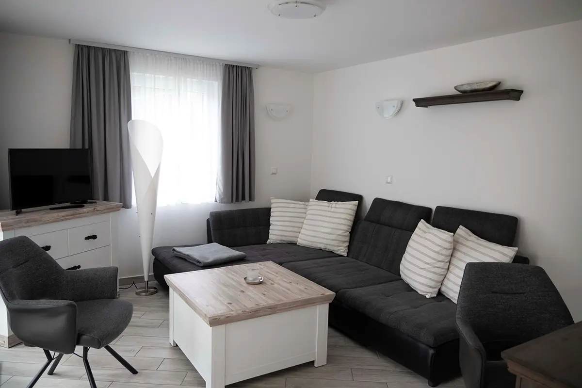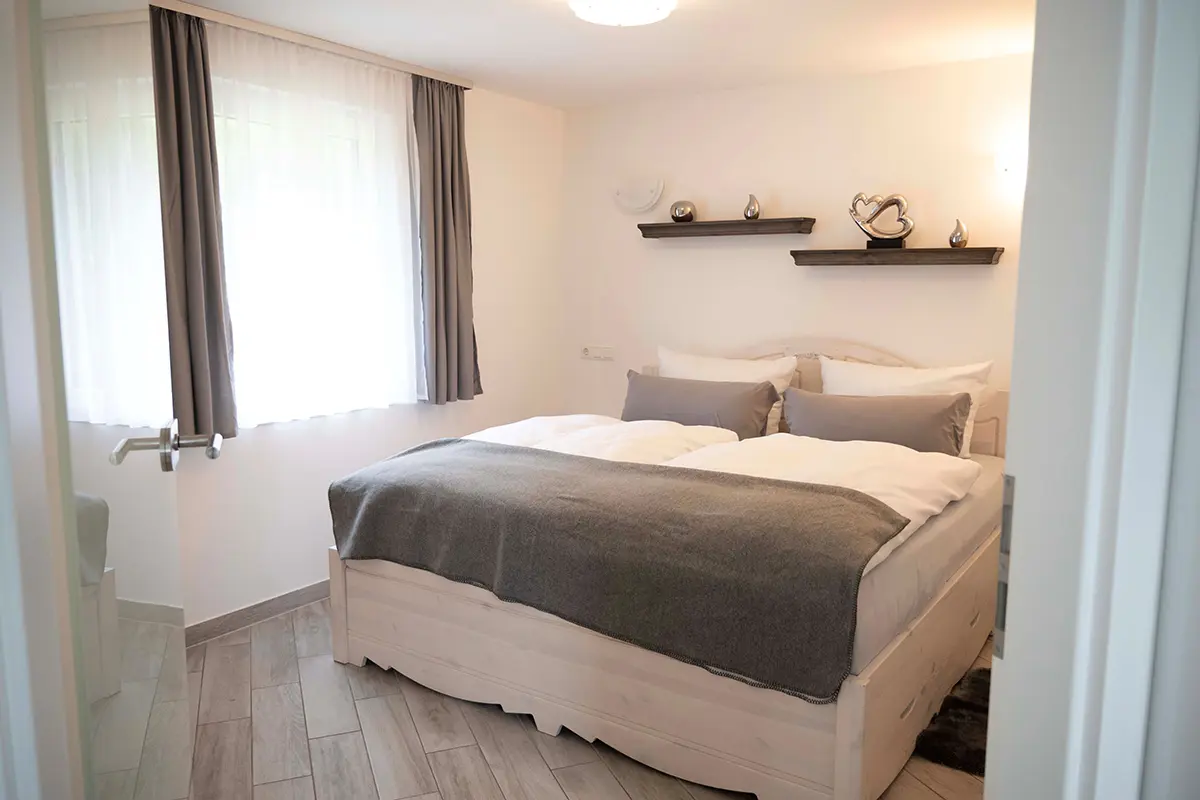 3 Appartements „Rennsteig Suite" für bis zu 6 Personen mit Walk-in-Dusche und seperatem WC & Apartement „Fuchs & Hase“ für bis zu 7 Personen mit einem Dachgeschosszimmer mit eigener Dusche und WC.